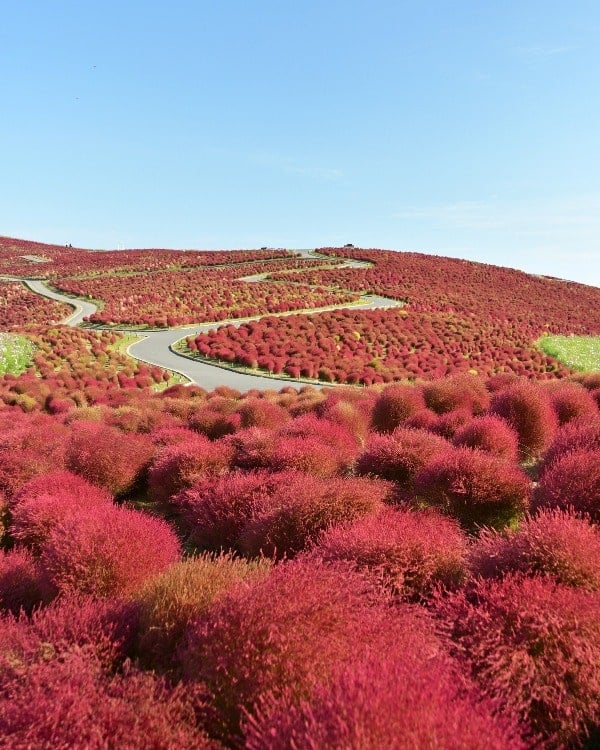 October 24, 2023 -If you are traveling around Tokyo, one of the best places to visit this late October is Hitachi Seaside Park in Ibaraki Prefecture. The park’s kochia plants have turned vibrant red!