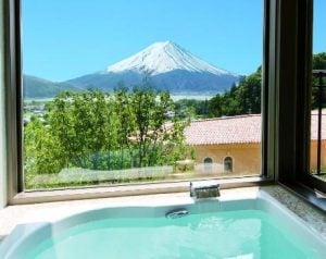 Experience the hot spring baths overlooking the Sagami Bay at KKR Hotel Atami. This hotel allows you to access its onsen. This means you don’t need to stay overnight there, and you can enjoy their onsen hospitality as a day-tripper.