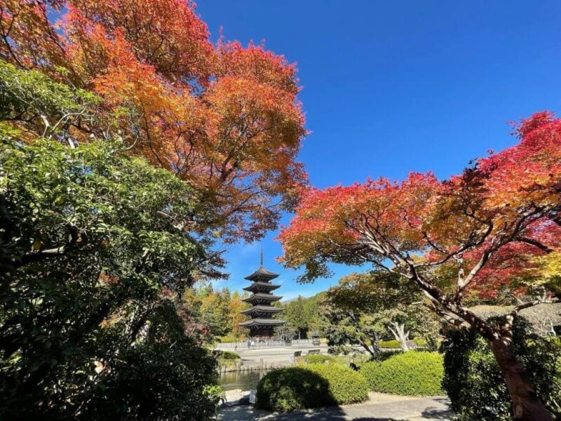 This beautiful Buddhist temple has been treasured for 800 years. When its beautiful five-story pagoda is surrounded by autumn colors, it is like walking into another world.